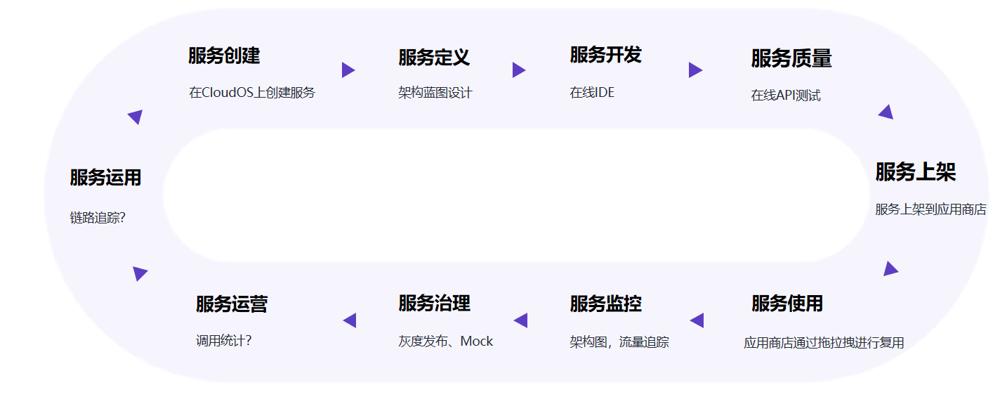 CloudOS一站式云原生开发平台主要包含以下三大模块: