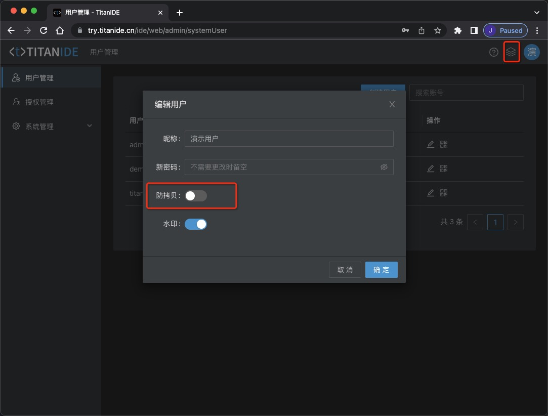 注意:如果您复制出来的地址是乱码,则需要到管理后台将防拷贝关闭,因为在默认情况下,TitanIDE会加密工作区的内容。
